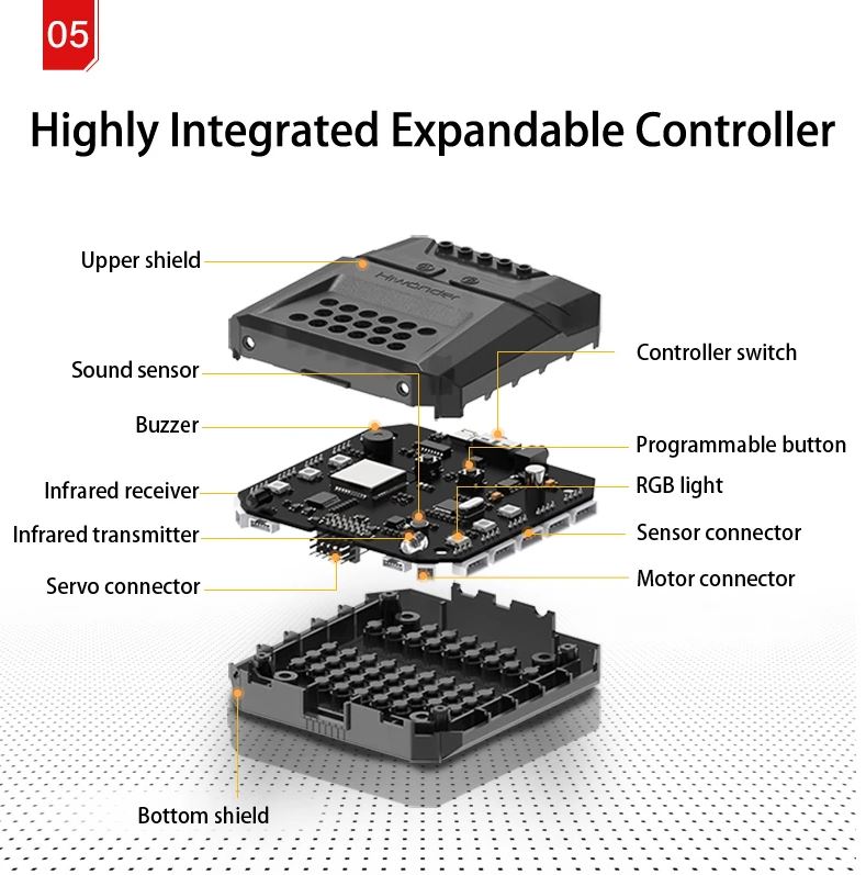 - Upgraded Servo Controller: With specifically designed cover, xArm2.0 servo controller has built in button, buzzer, sound sensor, RGB light, infrared receiver, etc. Unified connector and convenient wiring.