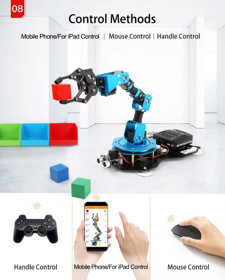 xArm2.0 is a programmable robotic arm With 6DOF, using intelligent serial bus servo. All these servos have equipped with position feedback ,voltage feedback functions. xArm2.0 supports multi-robot cooperation, ideal for electronics and coding learning.