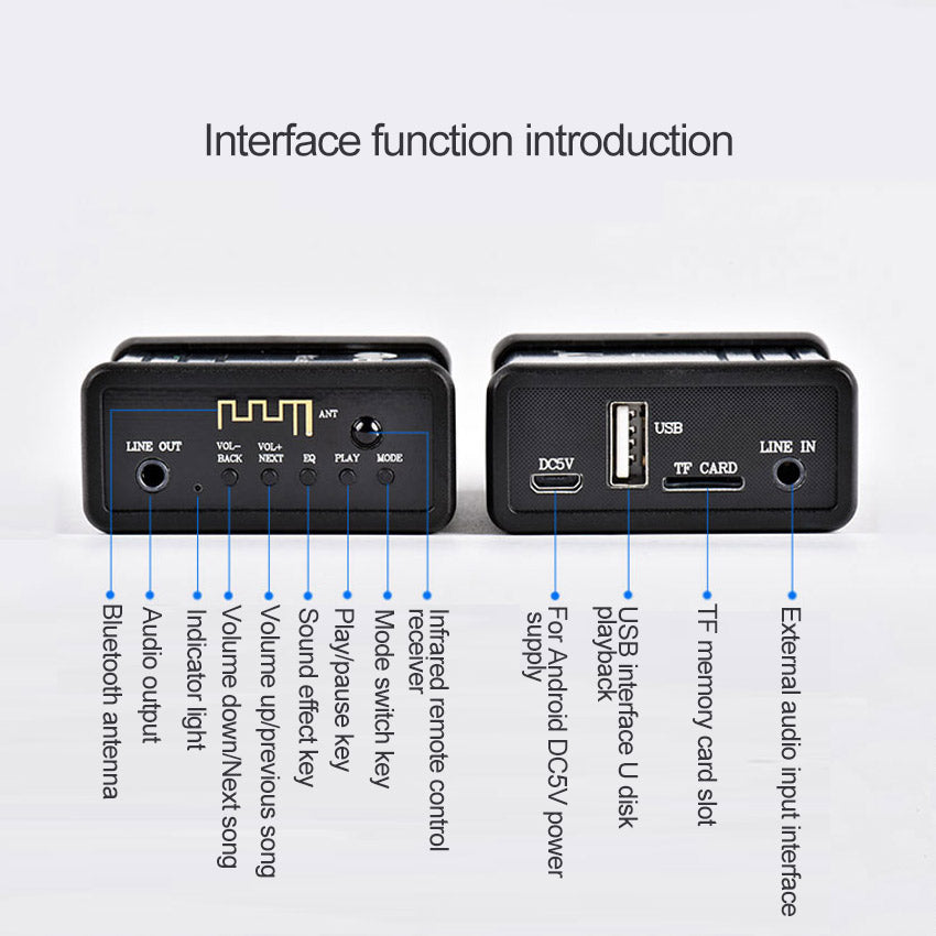 - Premium components: For USB U disk playing. For TF card playing. For AUX audio input. Imported filter. IR remote control receiver. Solid state audio capacitors. Upgraded Bluetooth 5.0 chip. With LINE OUT audio output port.