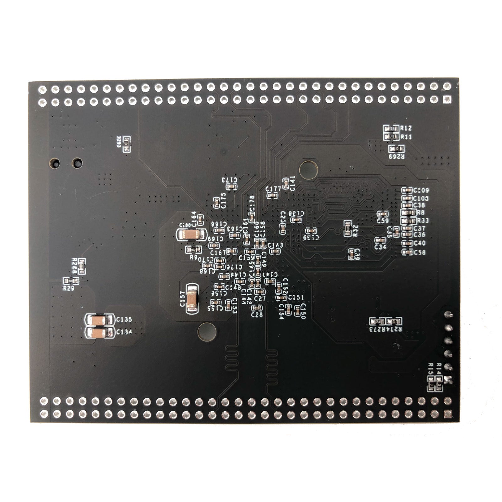 - There are two rows of 64p 2.54mm pins, which can be used to connect 24-bit TFT LCD screens, CYUSB3014 USB3.0 modules, high-speed ADC acquisition modules and CMOS camera modules;