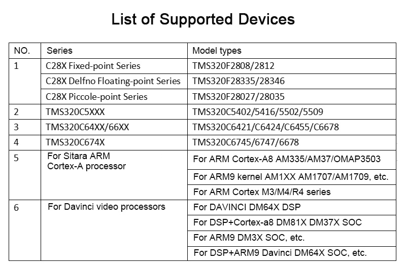 - It supports for Flash Programmer, UniFlash and C2prog programming software.
