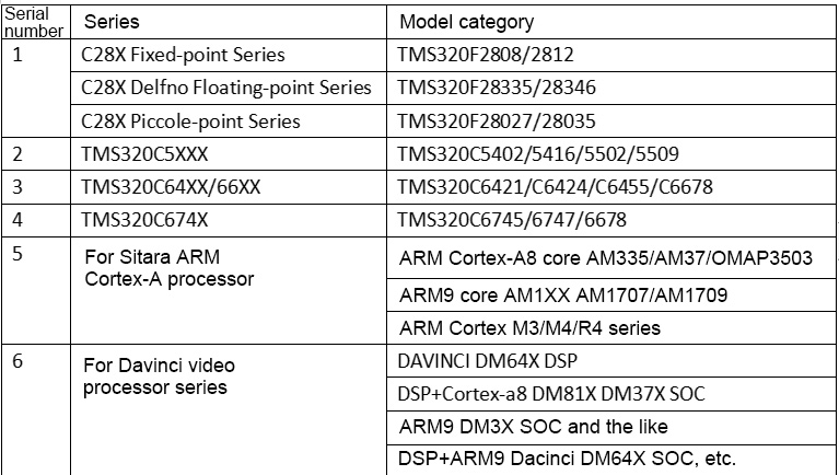 XDS100V2 is a downloader emulator. It supports for TI's official DSP core and ARM core chips. CCS4 software and later versions can be used. The emulator supports the chip models on the software.