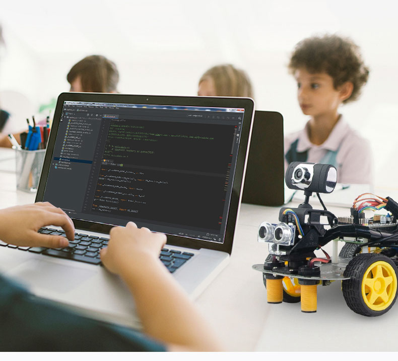 - Real-time video transmission: Connect the car in WIFI mode, and the PC and mobile APP screen can display the video image captured by the car camera in real time, presenting a first-person perspective
