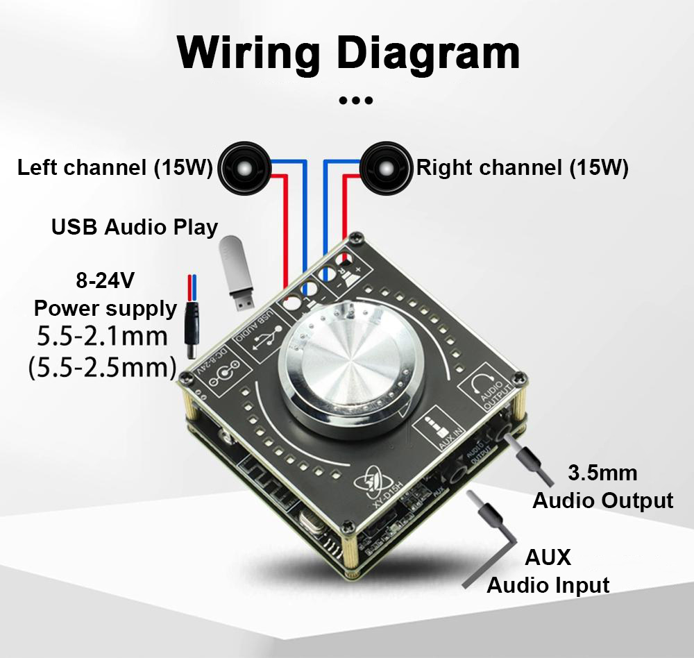 XY-D15H 15W+15W Stereo Bluetooth5.1 Digital Power Amplifier Board with Spectrum Rhythm Light Support APP Control