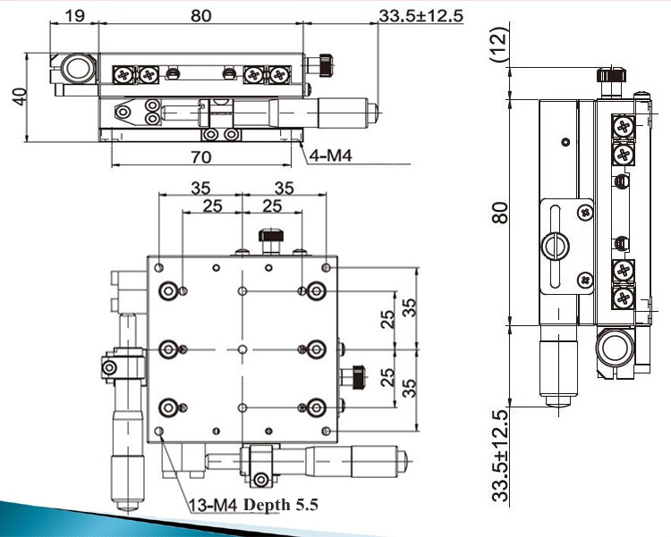 XYZ 3-Axis Manual Linear Stage 80x80mm Micrometer Linear Stage w/ Crossed-Roller Bearing SEMXYZ-80