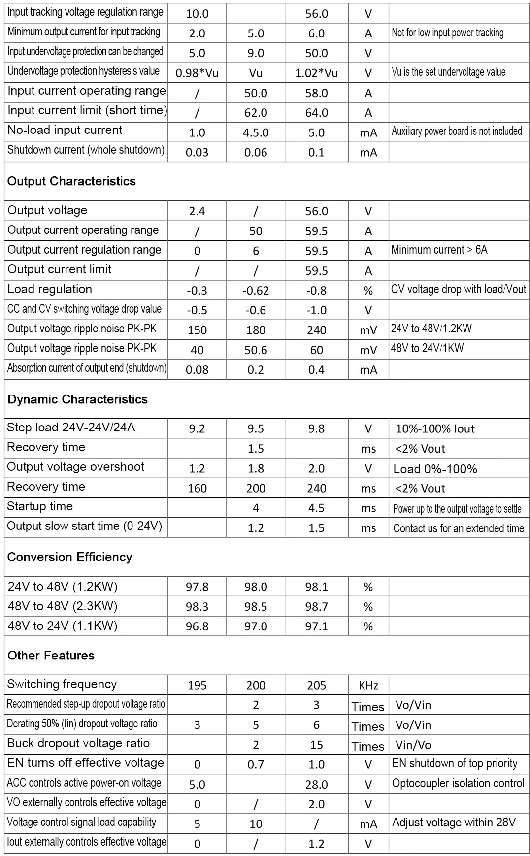 - Wide input DC9-58V and output DC3-56V