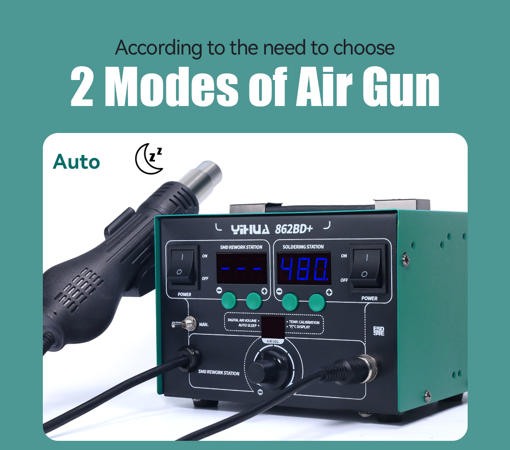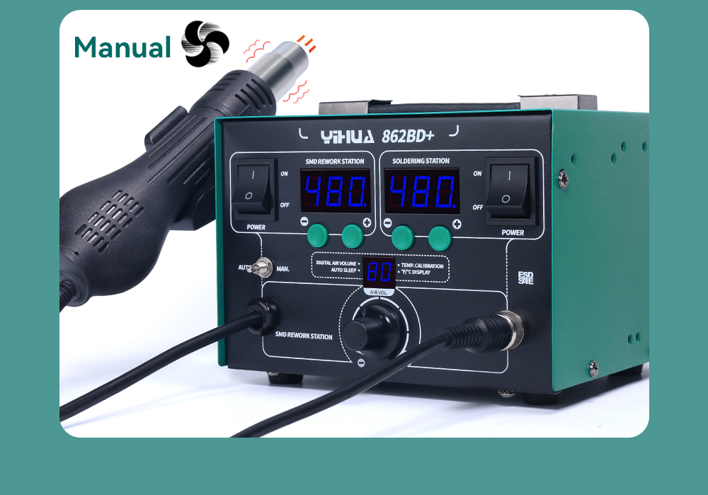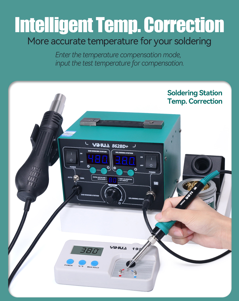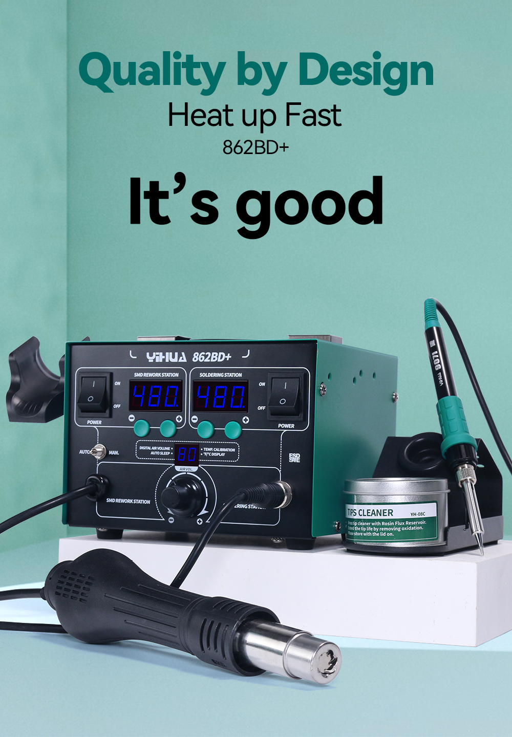 YIHUA 862BD+ Dual Digital Display Anti-Static Soldering Station High Power 2 In 1 Soldering Station