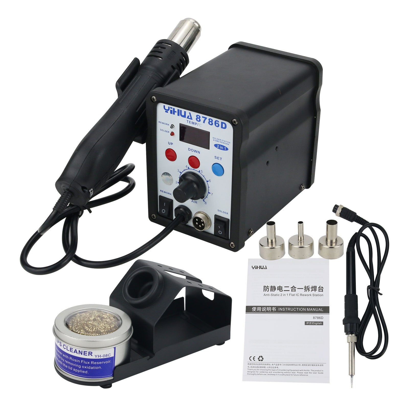 YIHUA 8786D 2 In 1 Hot Air Gun Desoldering Station Anti-Static Rework Station With Digital Display