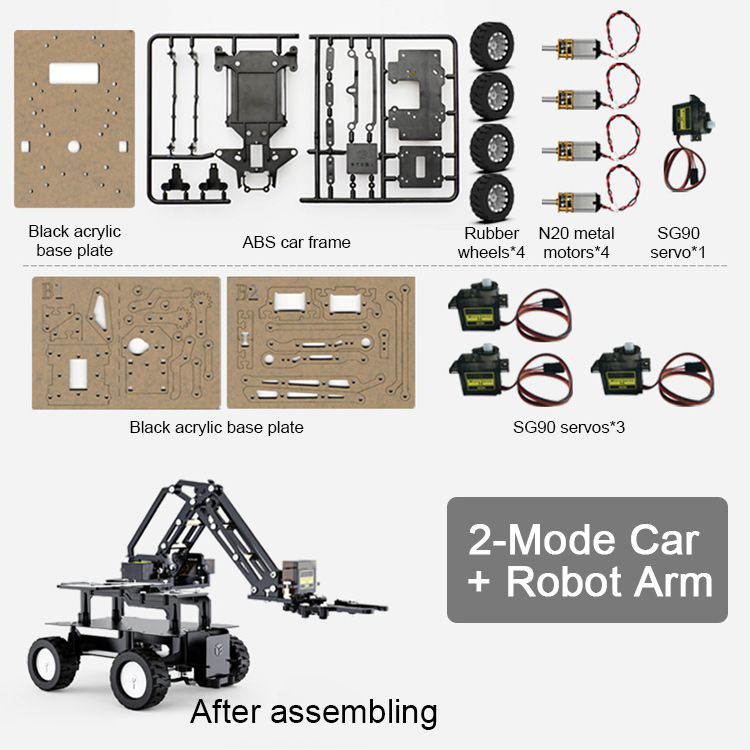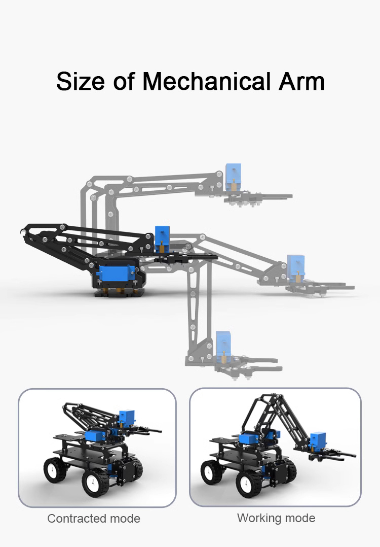 - The 4WD robot car supports 2 movement modes