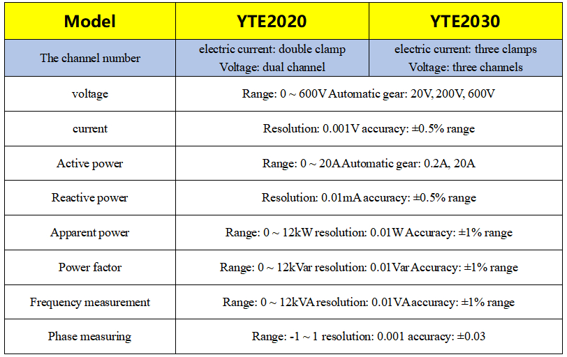 It can simultaneously measure ac voltage, current, phase between voltage, phase between current, phase between voltage and current, frequency, active power, reactive power, apparent power and power factor.