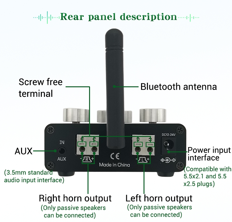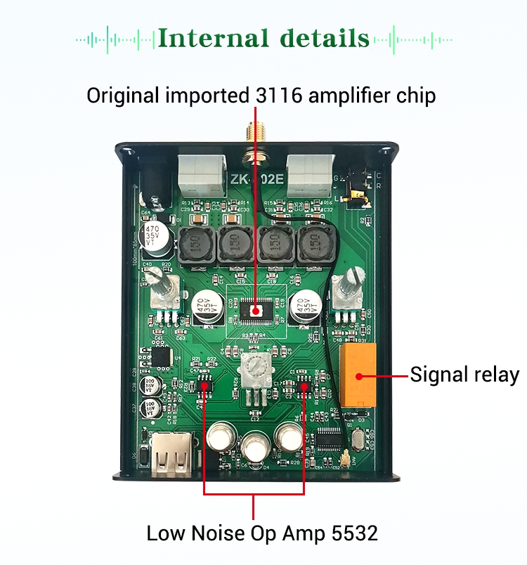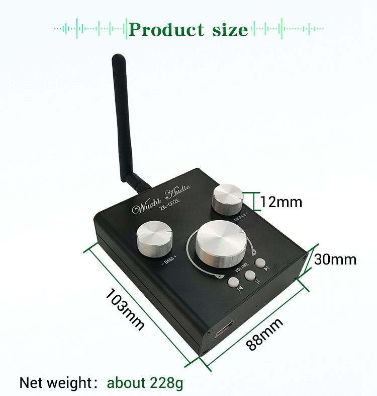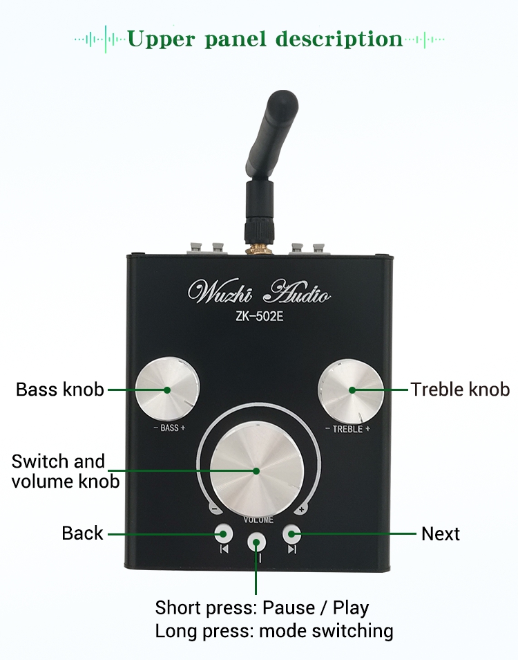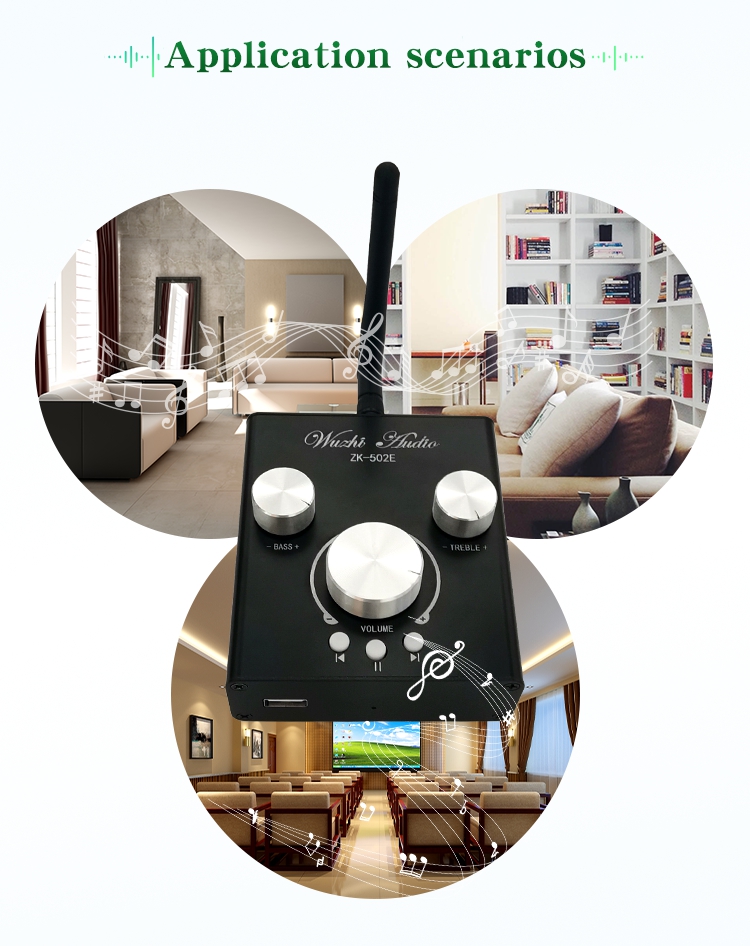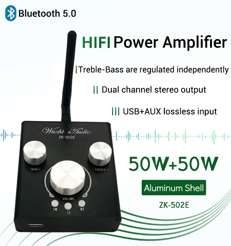 ZK-502E Bluetooth 5.0 Amplifier 50W*2 Hifi Stereo Amp 2 Channel Amplifier With Bass Treble Knobs