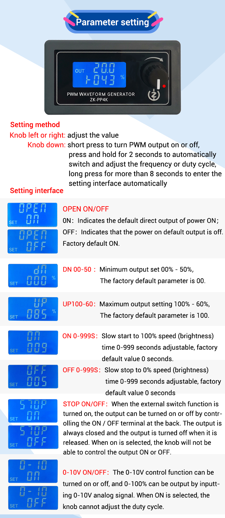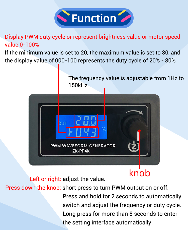 ZK-PP4K PWM Pulse Generator PWM Waveform Generator 1Hz-150KHz w/ LCD Display For Lighting LED Motor