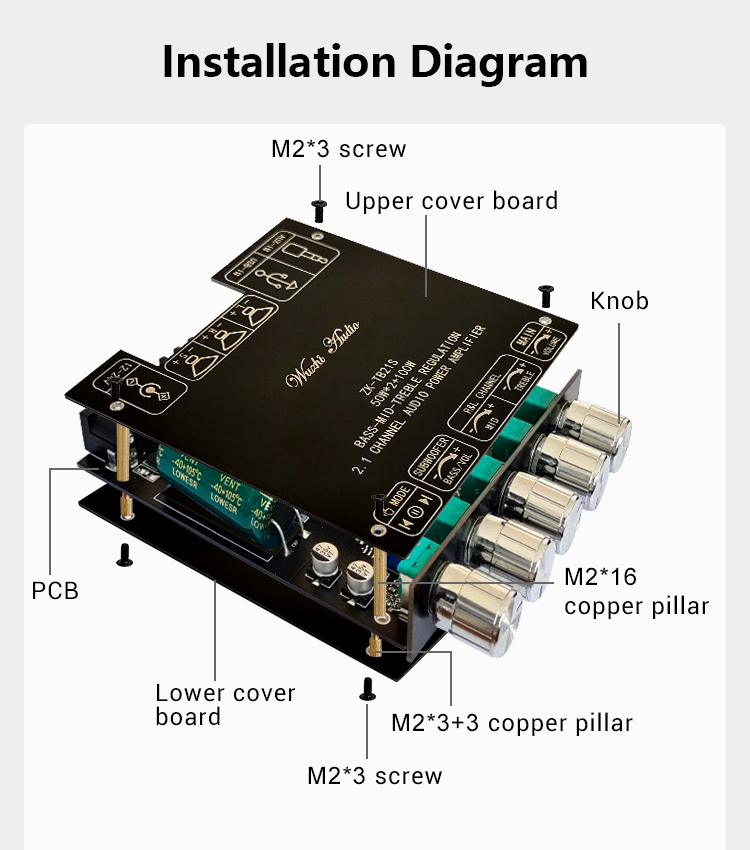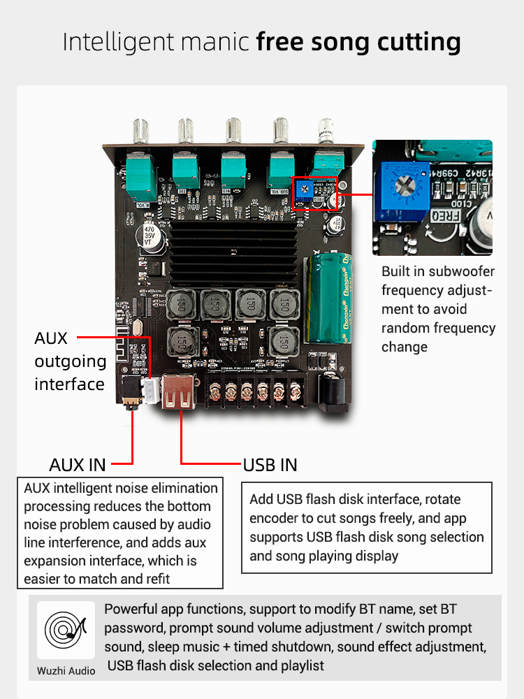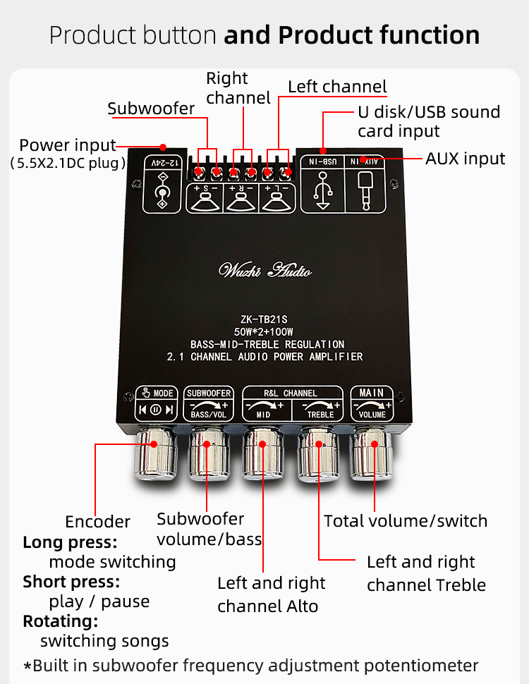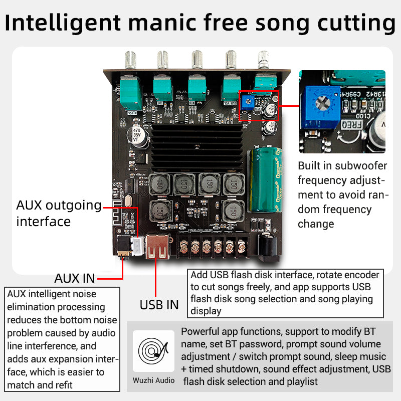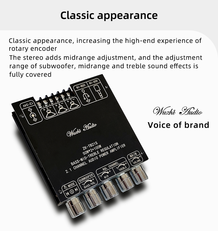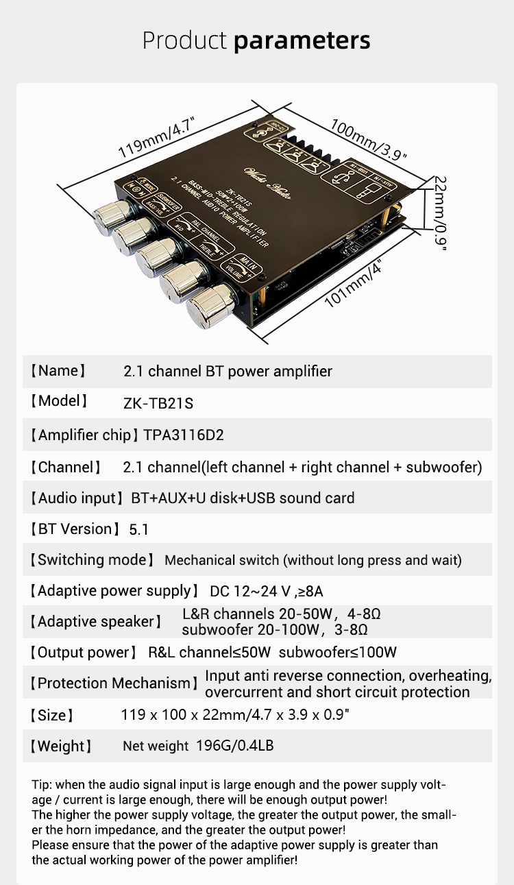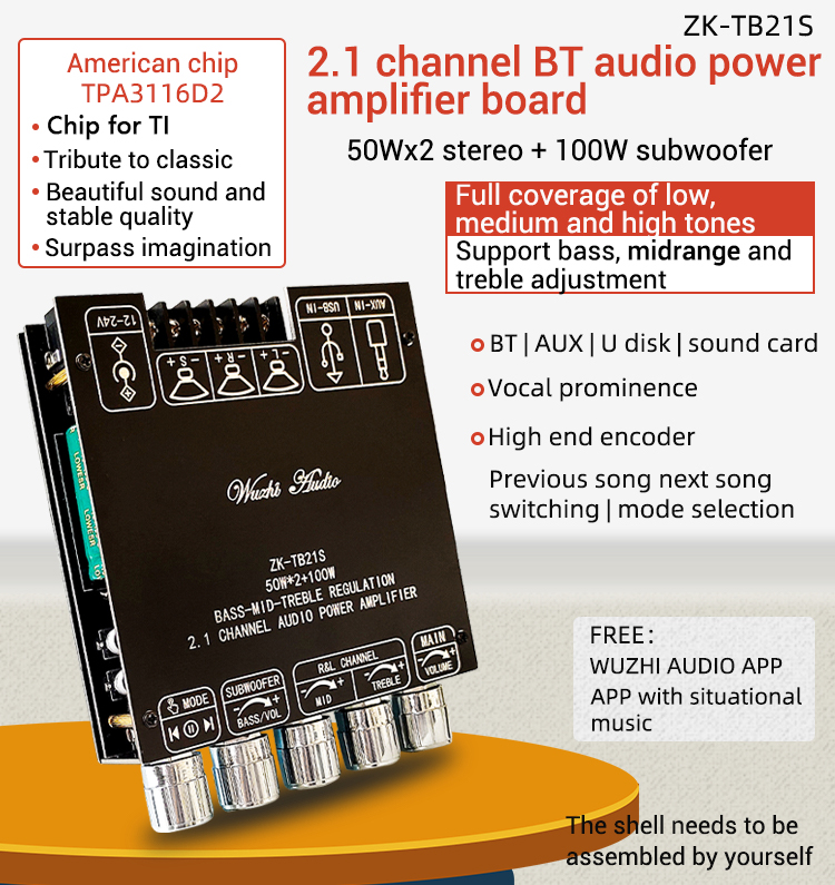 ZK-TB21S 50*2+100W 2.1 Channel Power Amplifier Module Bluetooth Power Amp with American Chip