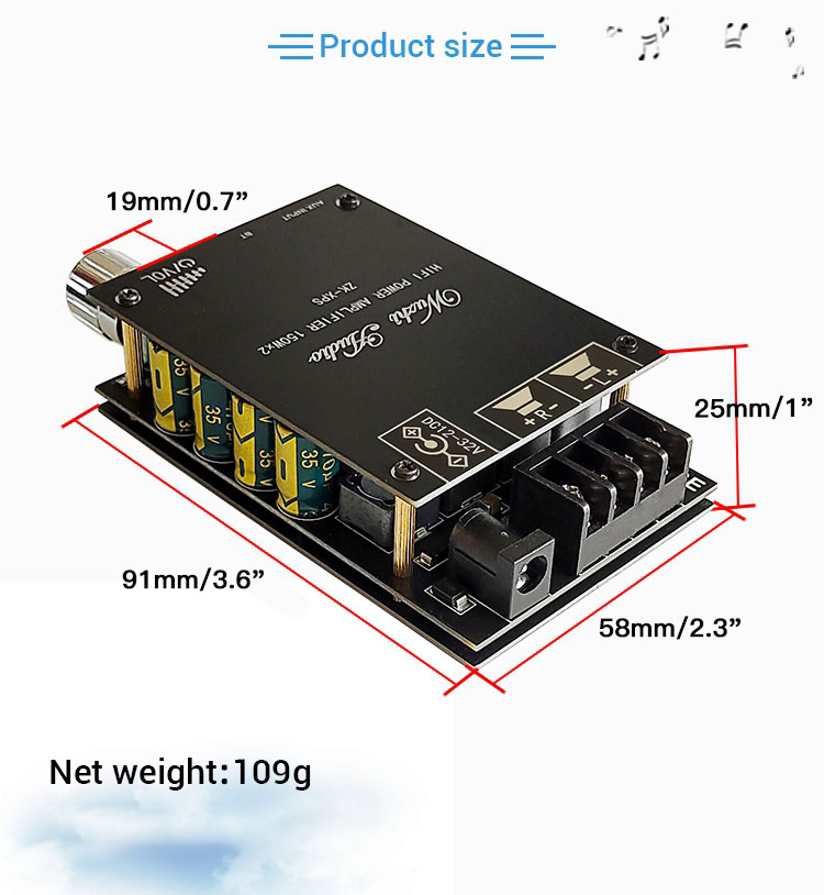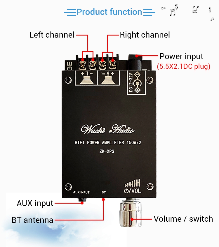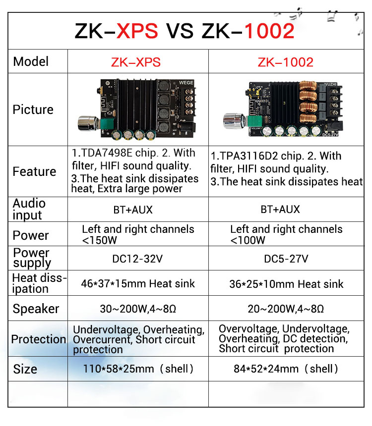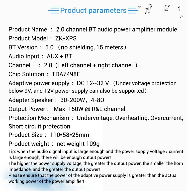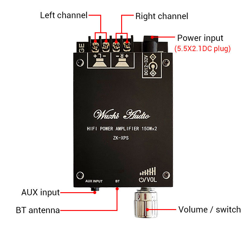 ZK-XPS Hifi Power Amplifier 150Wx2 Bluetooth Power Amplifier 2 Channel Stereo Amplifier TDA7498E