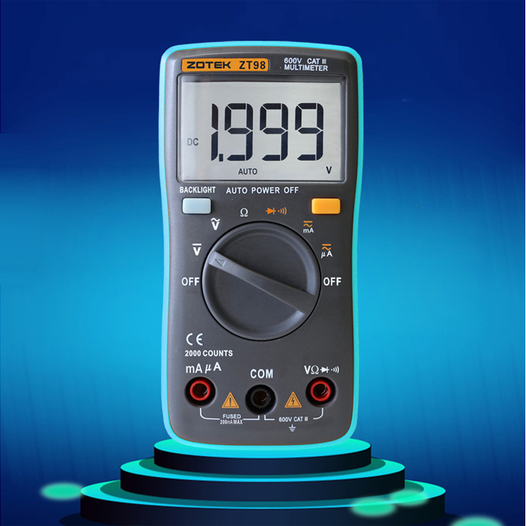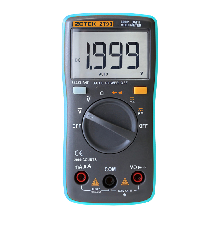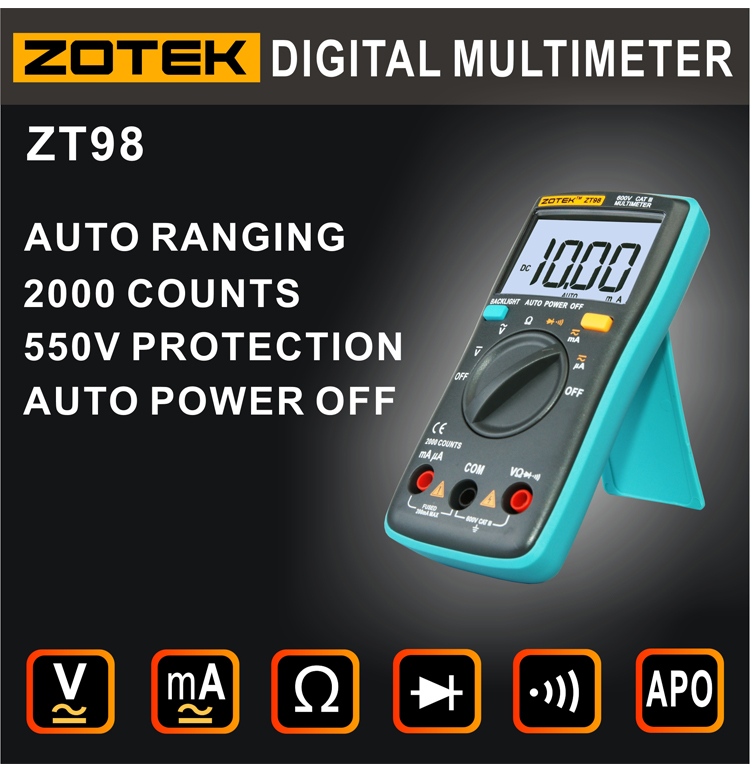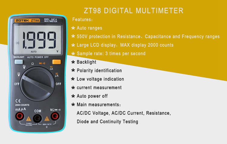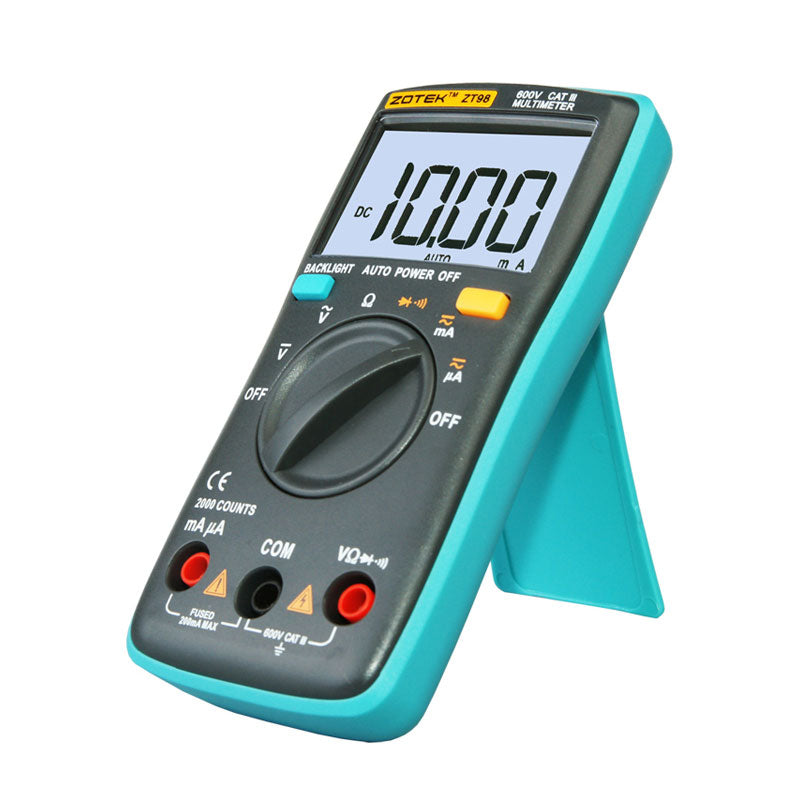 ZOTEK ZT98 600V CAT III Multimeter Autoranging Digital Multimeter Tester 2000 Counts Backlit LCD