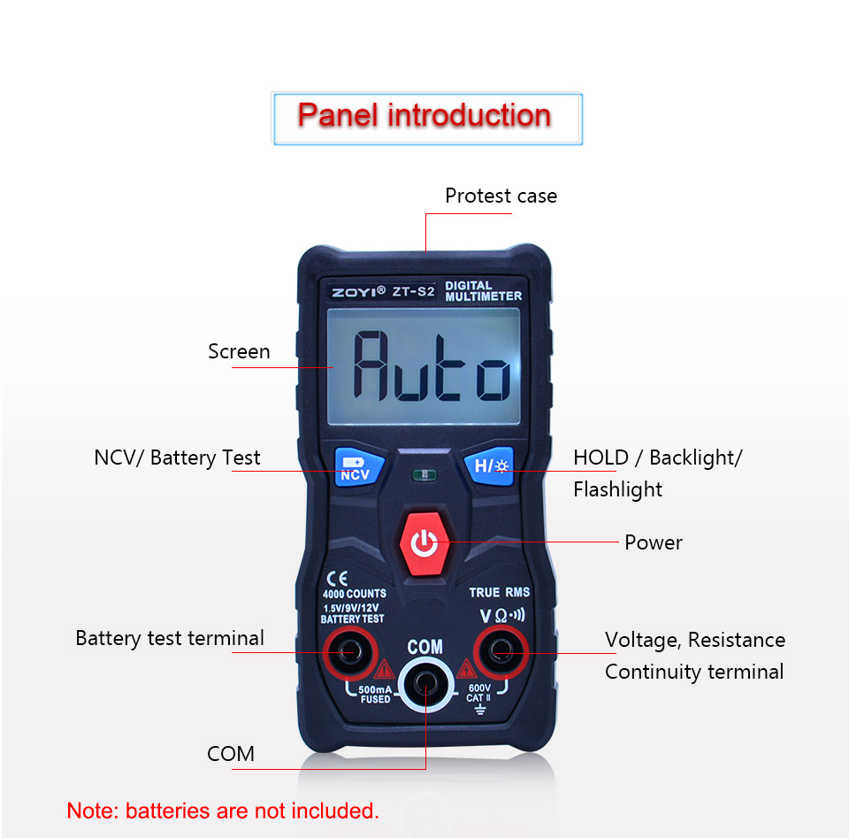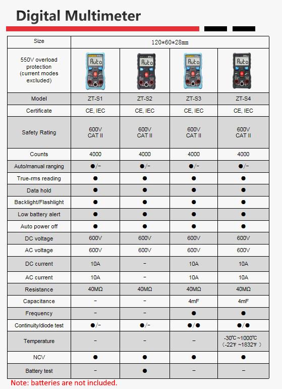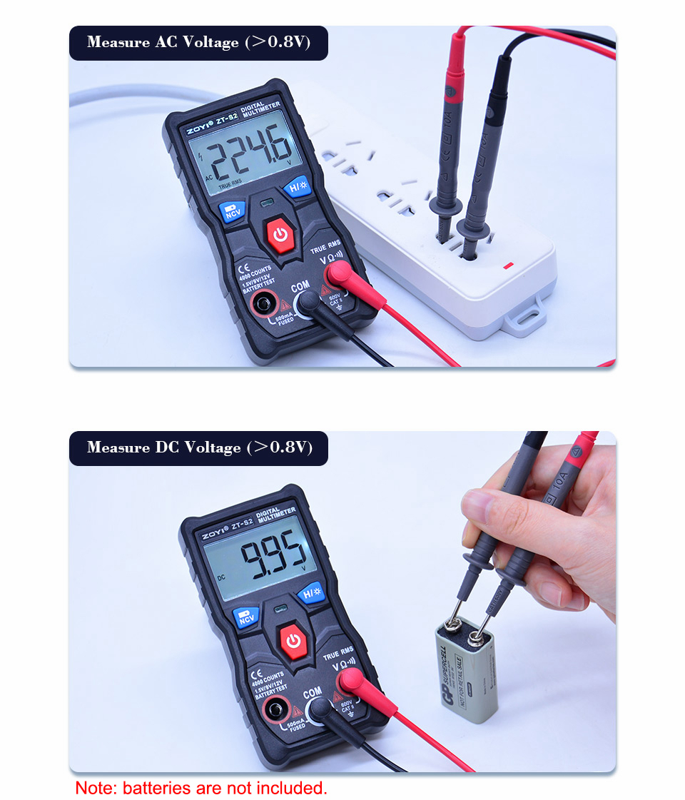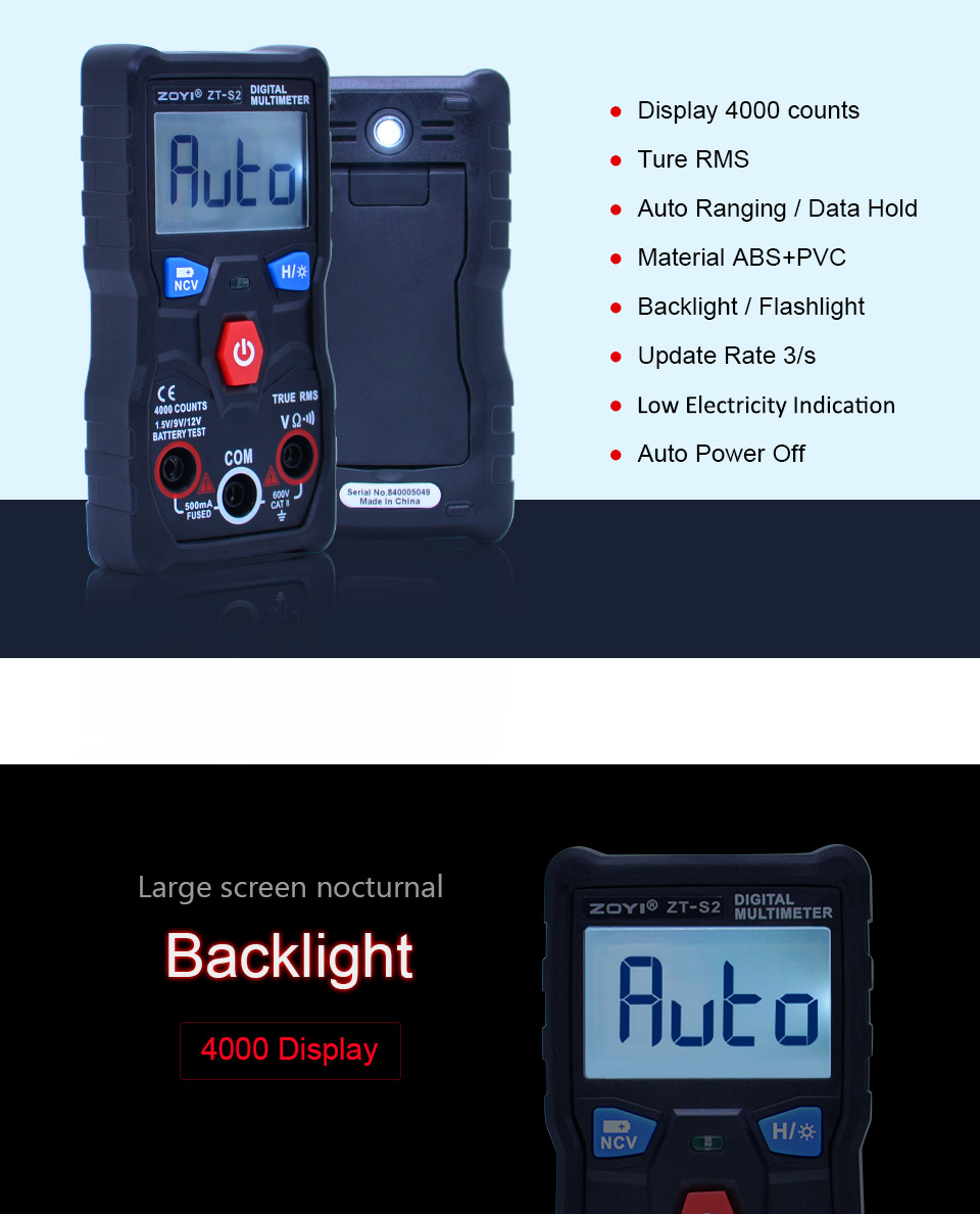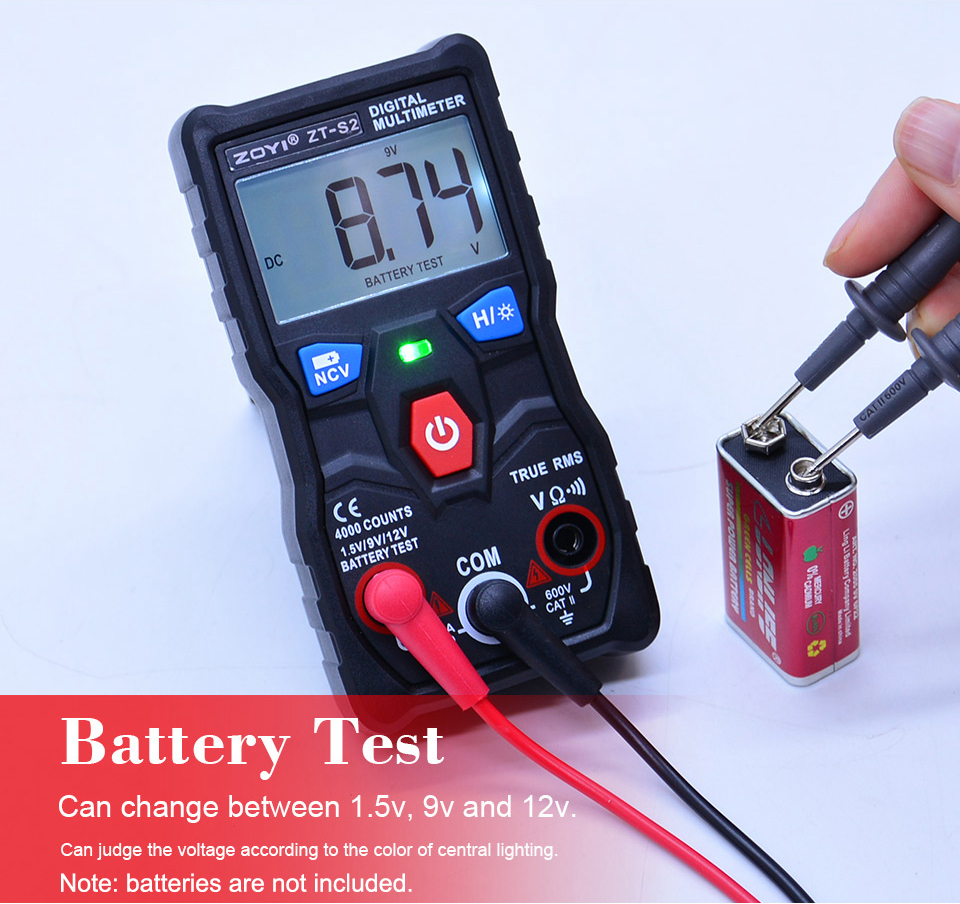 ZT-S2 is a mini digital multimeter with backlight & flashlight, used to test battery. It is a useful tool for DIY makers, new users, students, and maintenance. CAT II 600V, you can get all the measurements for: