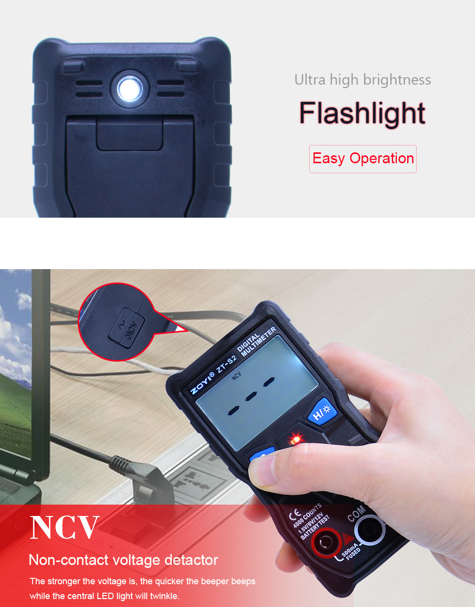 ZOYI ZT-S2 Digital Multimeter 4000 Counts Automatic Multimeter Tester NCV to Test Battery