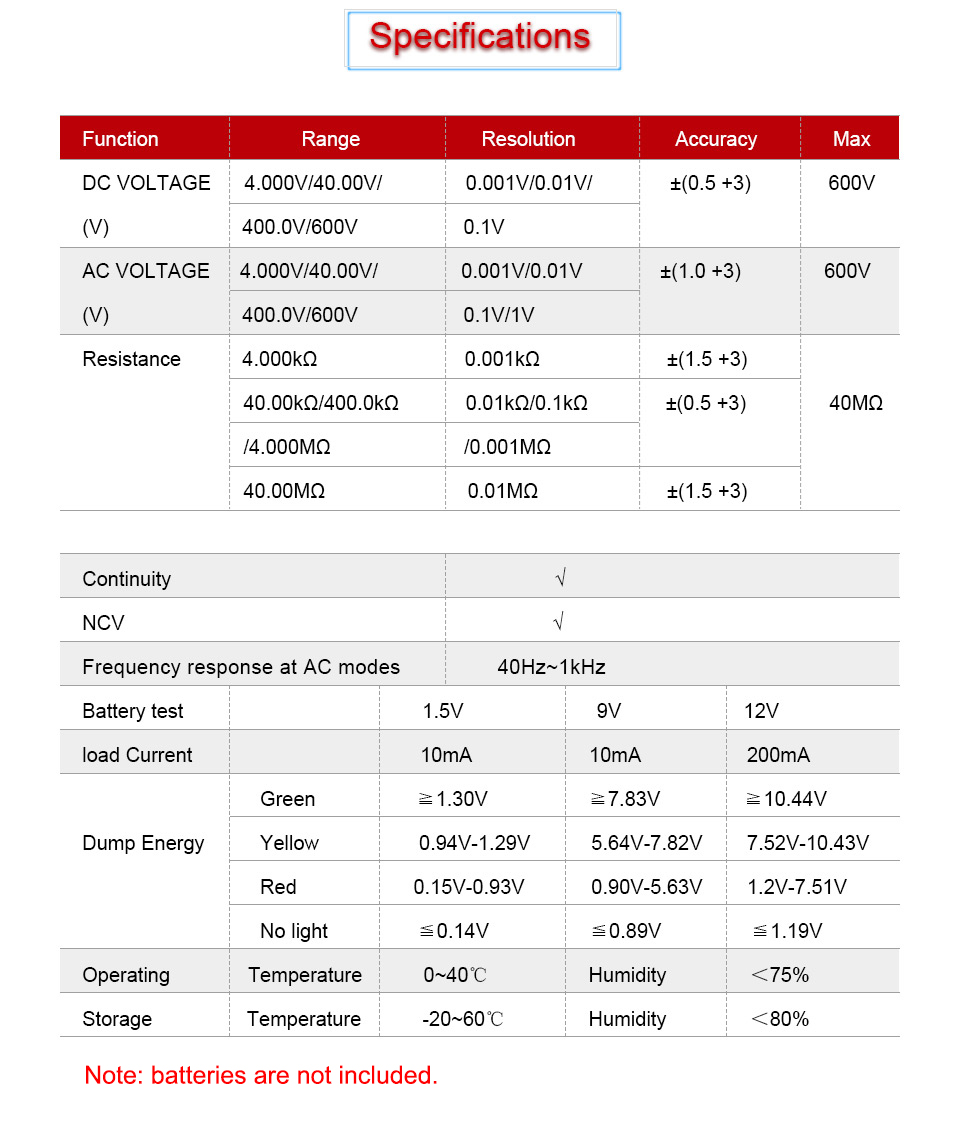 - 1 x Set of Multimeter