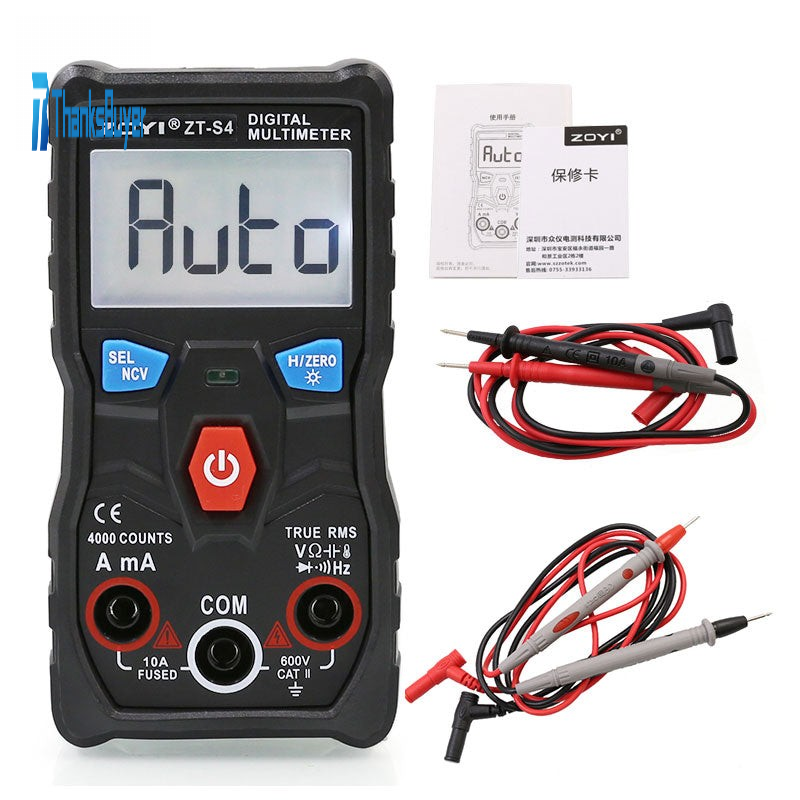 * ZT-S1: Test DC voltage, AC voltage, DC current, AC current, resistance, on-off buzzer, NCV, TRMS