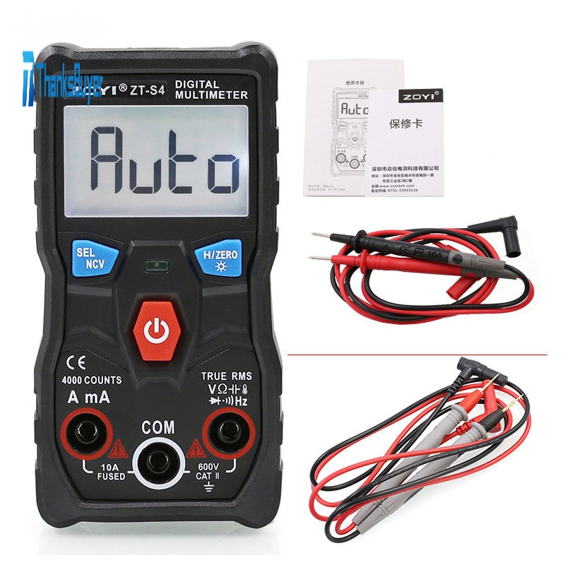 * ZT-S1: Test DC voltage, AC voltage, DC current, AC current, resistance, on-off buzzer, NCV, TRMS