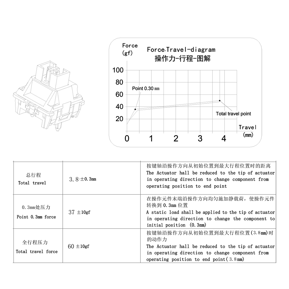 - Advanced magnetic axis: Equipped with Hejin7.0 magnetic axis, total travel 3.8±0.3mm, pressure 37±10gf at 0.3mm, full travel pressure 60±10gf, ensuring precise control and stable performance of each key.
