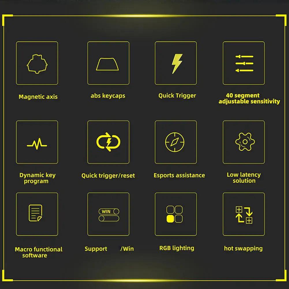 - High-speed response: The magnetic switch keyboard design is used, and the trigger speed is more than ten times faster than the traditional axis, ensuring instant of game operations.