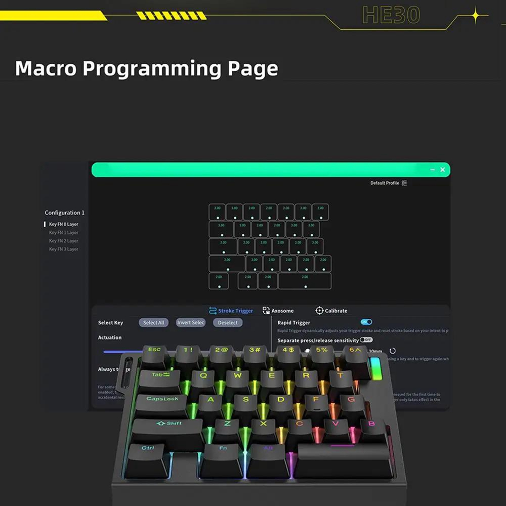 - Precise adjustment: The trigger key travel can be automatically adjusted, allowing users to personalize according to their habits and needs.