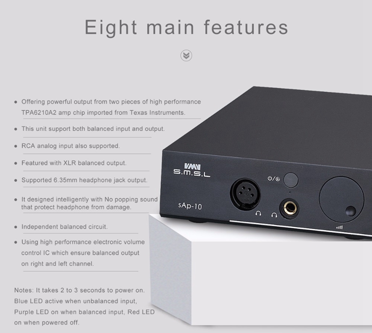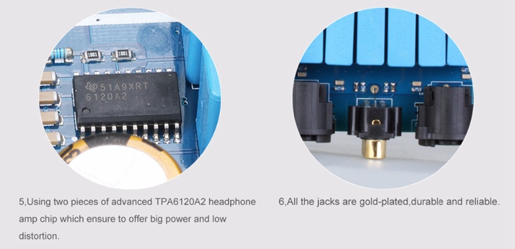 - Using two pieces of advanced TPA6120A2 headphone amp chip which ensure to offer big power and low distortion.