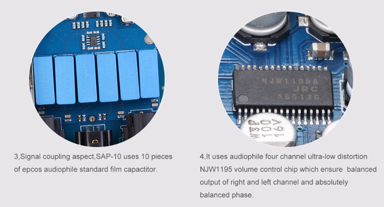 - Signal coupling aspect, SAP-10 uses 10 pieces of epcos audiophile standard film capacitor.