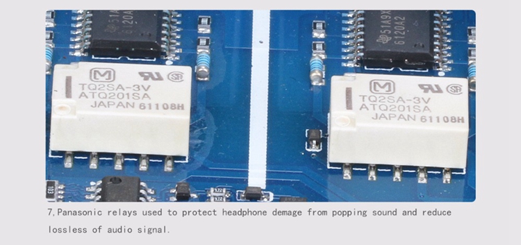 - Panasonic relays used to protect headphone damage from popping sound and reduce lossless of audio signal.