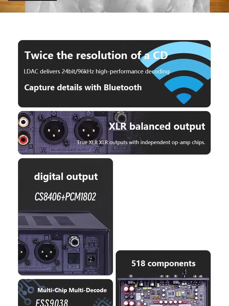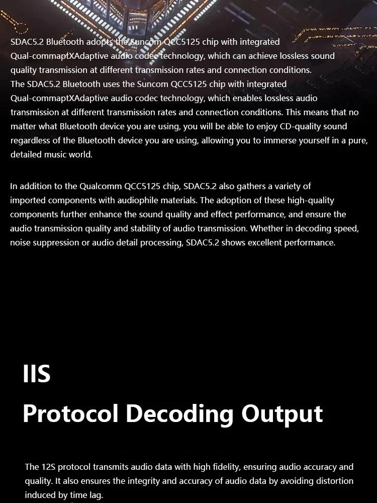 - Bluetooth protocol: for LDAC/APTX/APTXHD/APTX-LL/AAC/ADAPTIVE/SBC