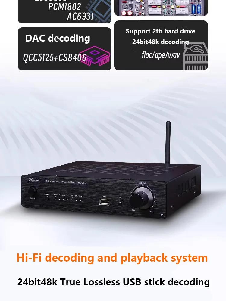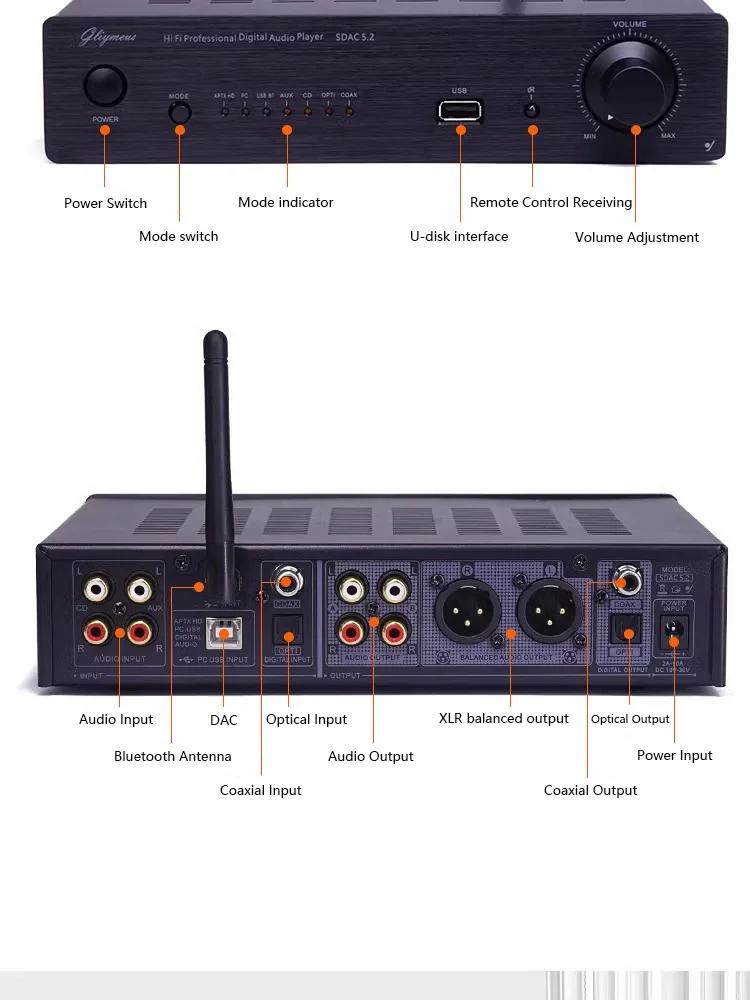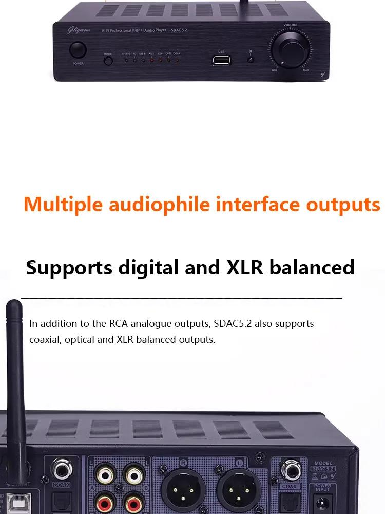SDAC5.2 HiFi LDAC/APTX Lossless Bluetooth Digital Audio Player 24Bit 48K ES9038Q2M DAC CS8406