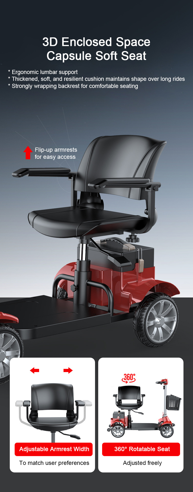 * 360° Rotatable Seat: Adjust freely according to the environment and usage needs