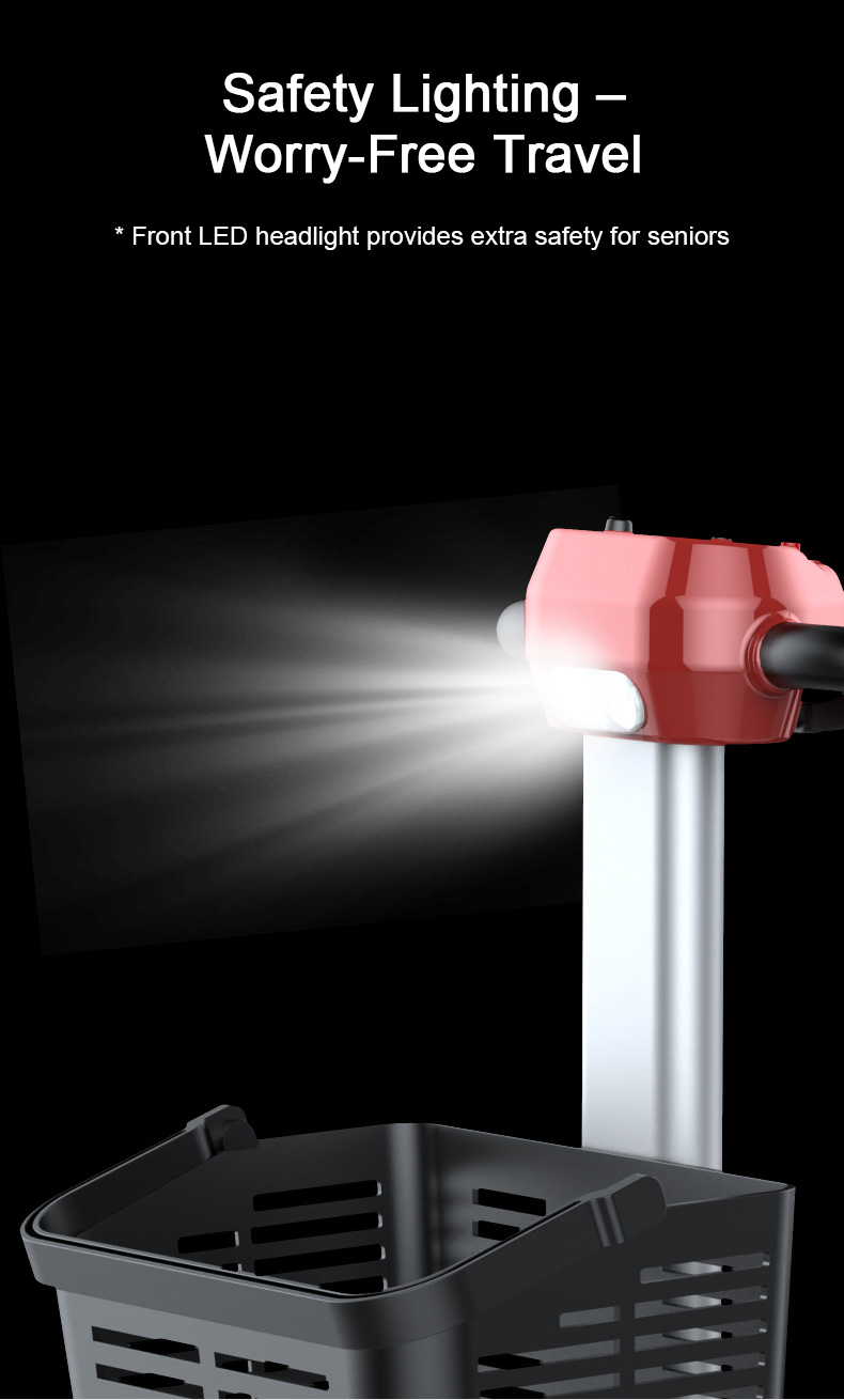 * Front LED headlight provides extra safety for seniors
