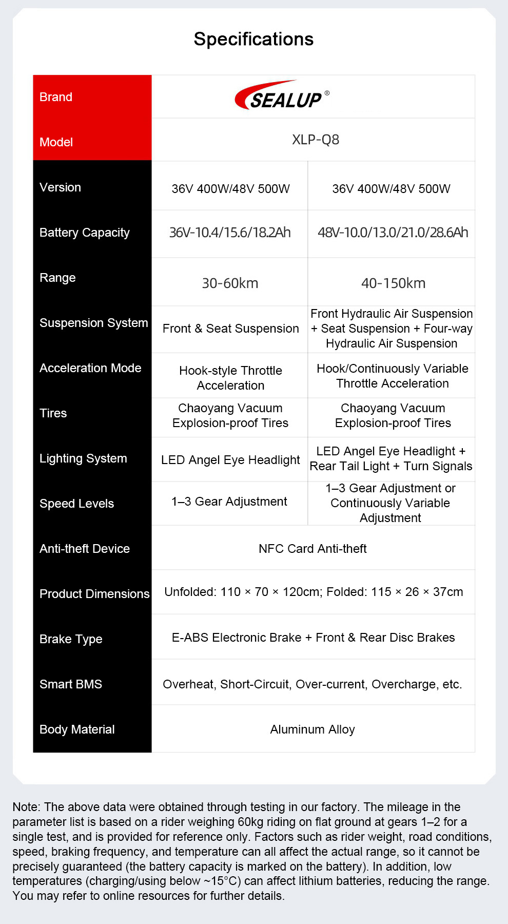 * The XLP-Q8 series is equipped with a high-strength lightweight alloy frame, manufactured using aerospace-grade techniques such as forging, liquid die forging, and high-pressure extrusion, ensuring frame rigidity strong enough to withstand "extreme sports".