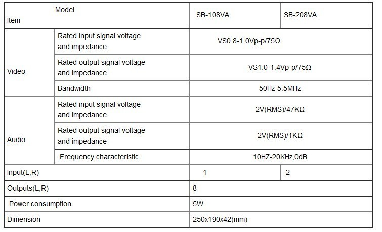 Seebest SB-108VA RCA Amplifier Splitter 1 Input 8 Output AV Amp Distributor Video Distribution Amp