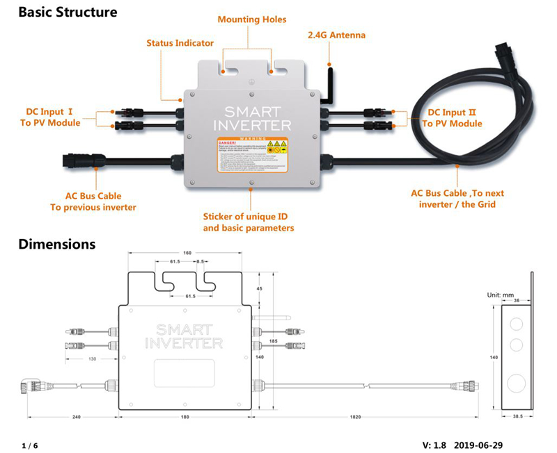 - 1 x Set of SG450MD(Regular) Solar Power Micro Inverter