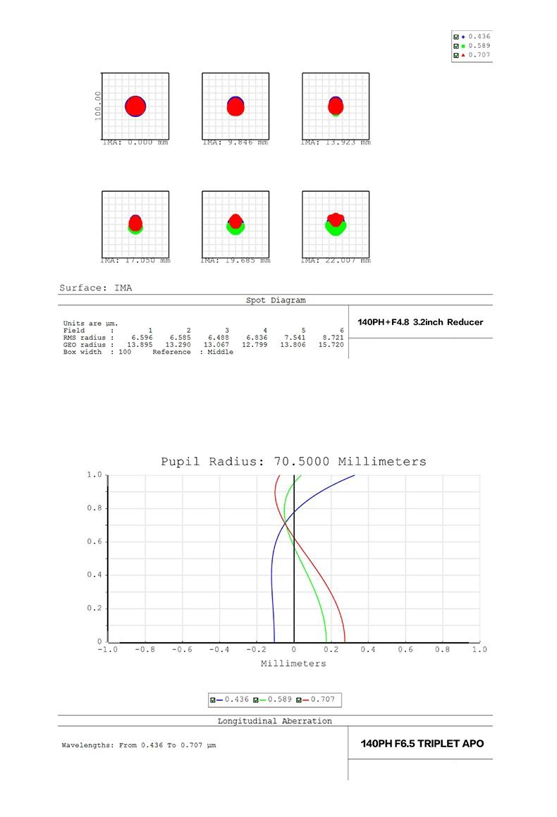 - The newly designed large 3-inch full frame reducer for the 140PH APO features a high-quality metal body design, reducing the focal ratio from the original F6.5 to F4.8. It is aesthetically pleasing and can be used for high-quality astrophotography with the 140PH APO, making the images clearer and the surrounding star points more perfect. It is an essential accessory for astrophotography enthusiasts.