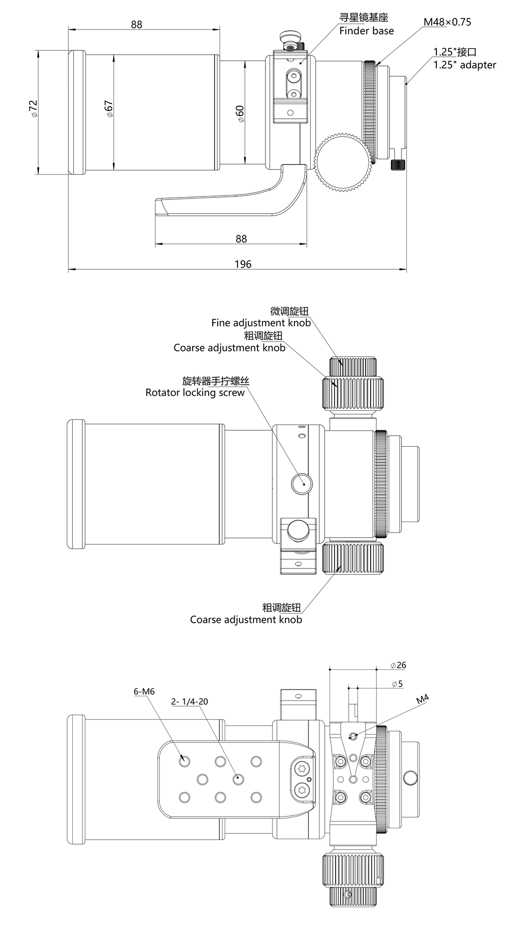 - Before the focuser, 50EDPH design a 360° rotator, which is also equipped with a rotator locking screw.