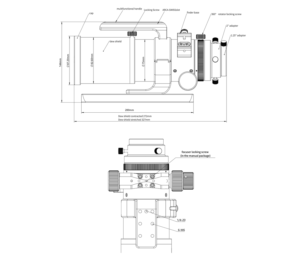 - The 61EDPH III upgraded the handle of the 61EDPH II to a multifunctional handle, which can be connected to the universal vixen-style finder base. In addition, the 61EDPH III is equipped with a 200mm long vixen dovetail plate, easier to connect to the equatorial mounts and accessories, and makes the OTA easier to balance on the mount. The appearance has smooth and natural lines, with the classic red and white color scheme, very simple and generous. The tube uses high-quality CNC machining, high-grade surface painting, and polished oxidation, elaborate and durable.