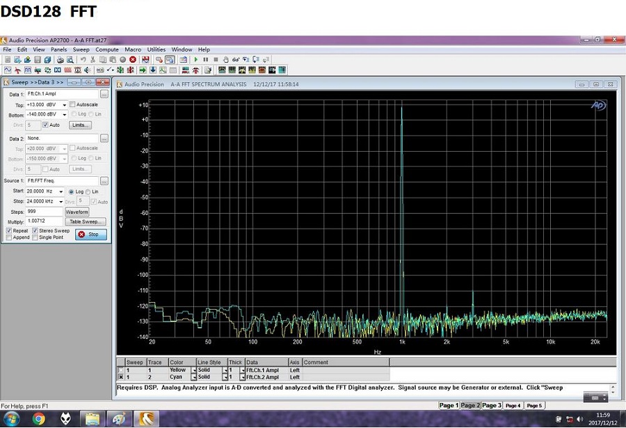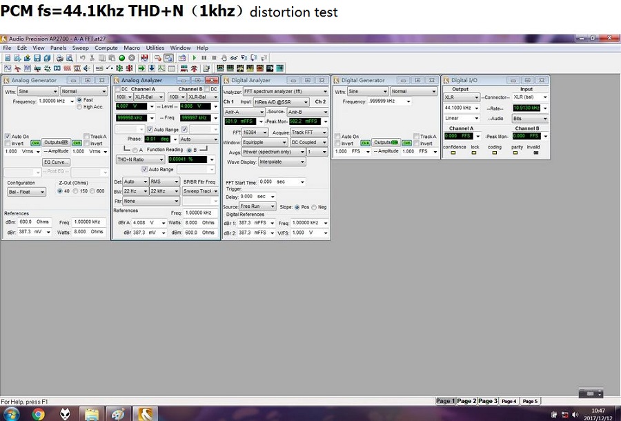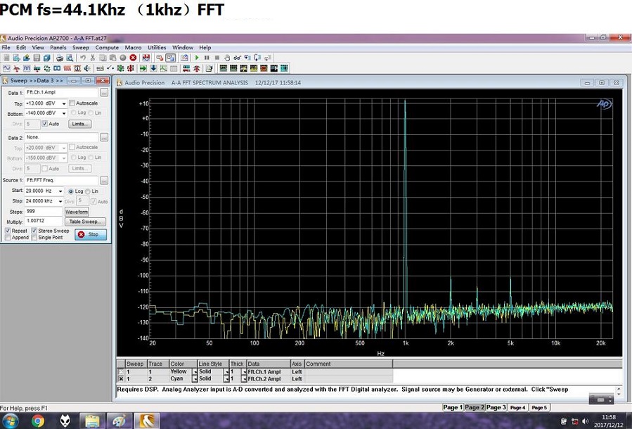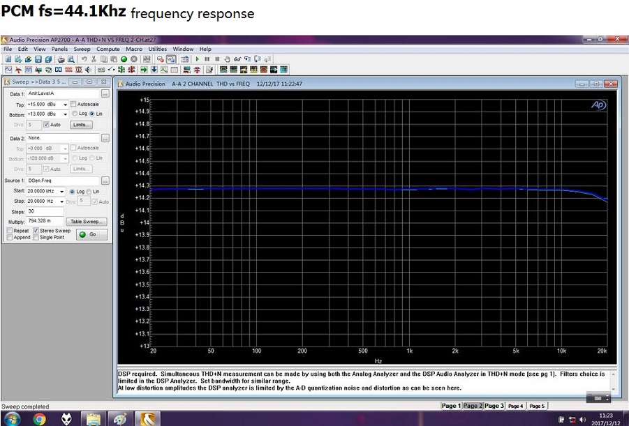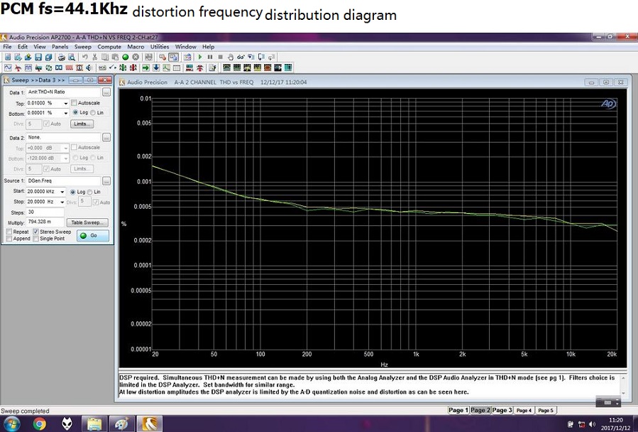 - Distortion characteristics:THD + N (1kHz, 0dBFS) 0.00042% at fs = 44.1Khz (PCM);THD + N (1kHz, 0dBFS) 0.00029% at DSD128