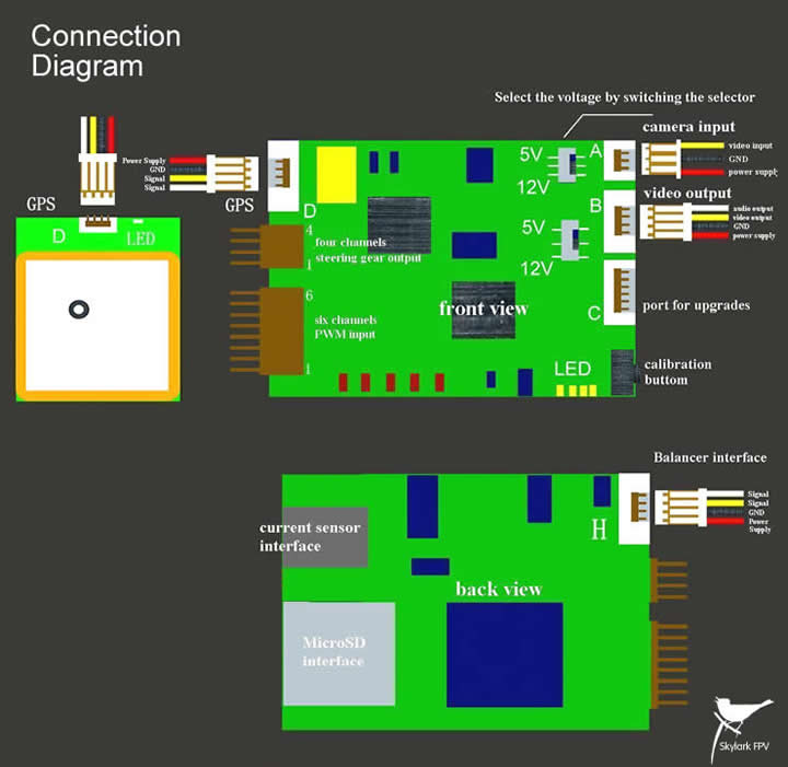 - 2 outputs voltage 5v/12v (Camera and video TX)