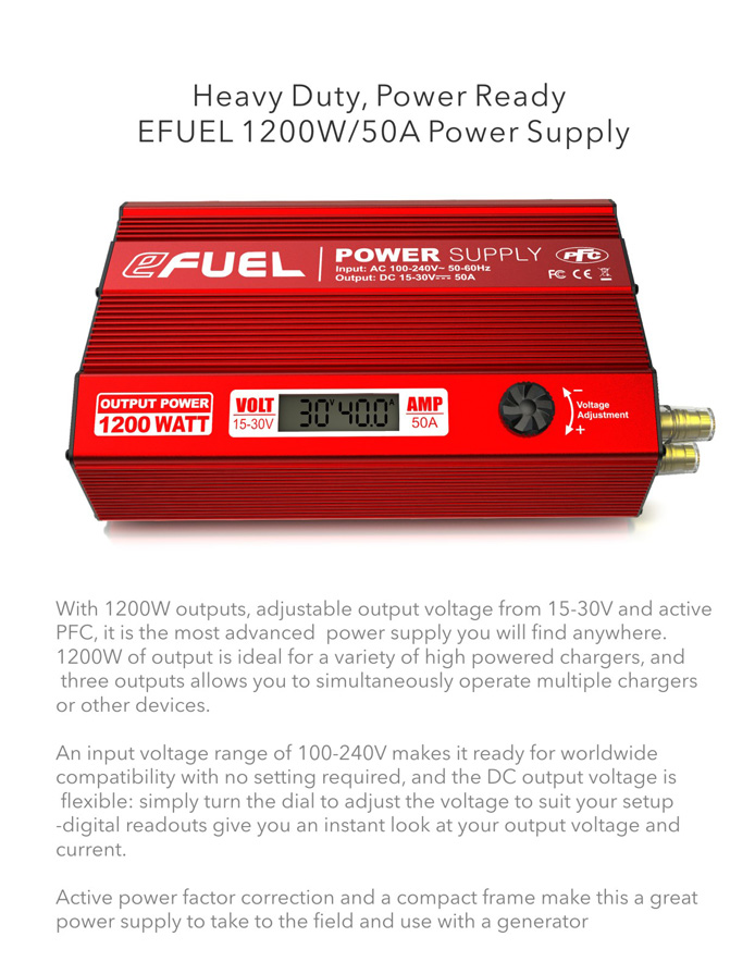 - 1 x SKyrc eFuel 1200W 50A Power Supply