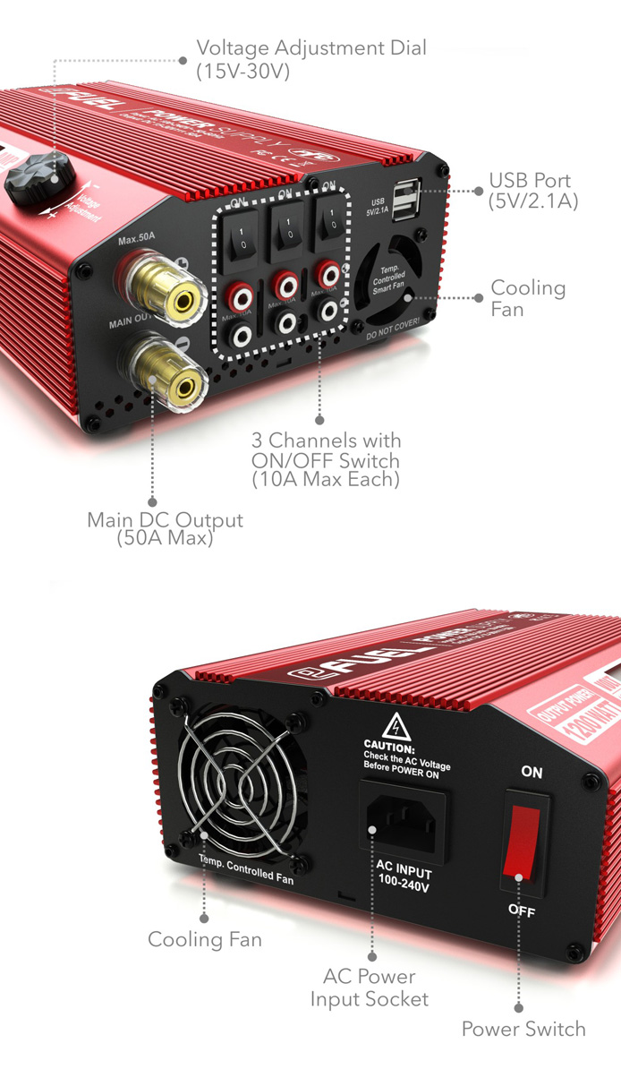 SKyrc eFuel 1200W 50A Power Supply 100-240V AC DC Switching Power Supply