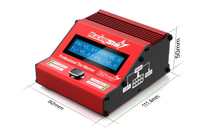 - The size of RacingStar RSTW Tire Warmer is 92*111.4*50mm which makes it a super portable product.