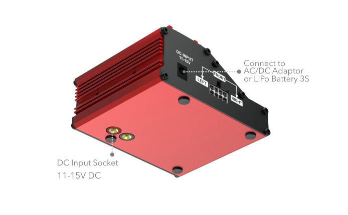 - DC power sources or 3S LiPo battery. The other one on the bottom is designed for the Direct Plug Docking System.