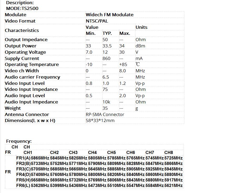 Skywing TS2500 Transmitter 5.8G 2000mW 48CH AV FPV VTX for RC Drone Quadcopter