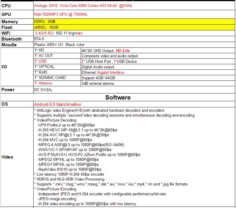 Smart Android TV Box Bluetooth 4.0 Amlogic S912 Octacore 2G 16G Multi Media Player Set Top Box