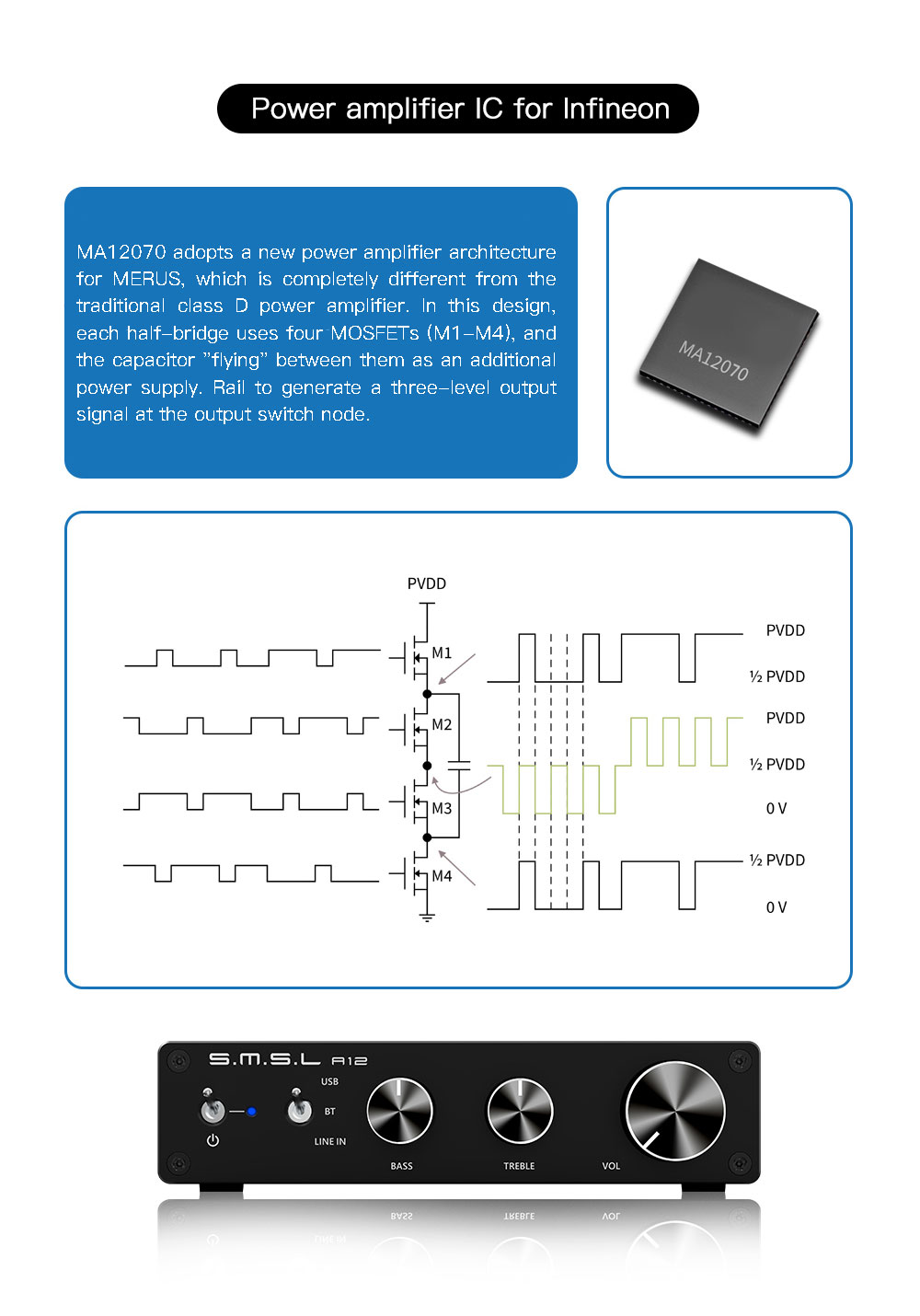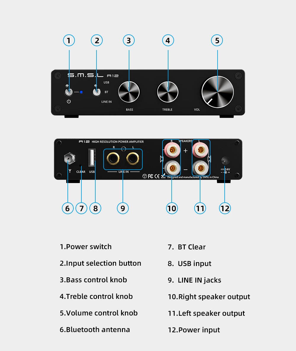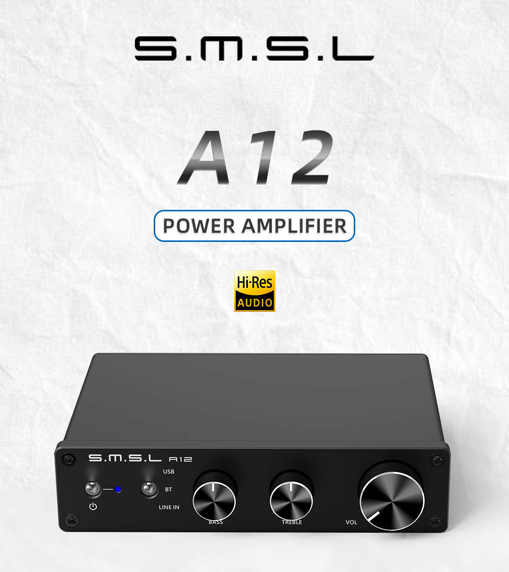 SMSL A12 BT5.0 Bluetooth Amplifier High Resolution Power Amplifier 80Wx2 Passive Hifi Power Amp