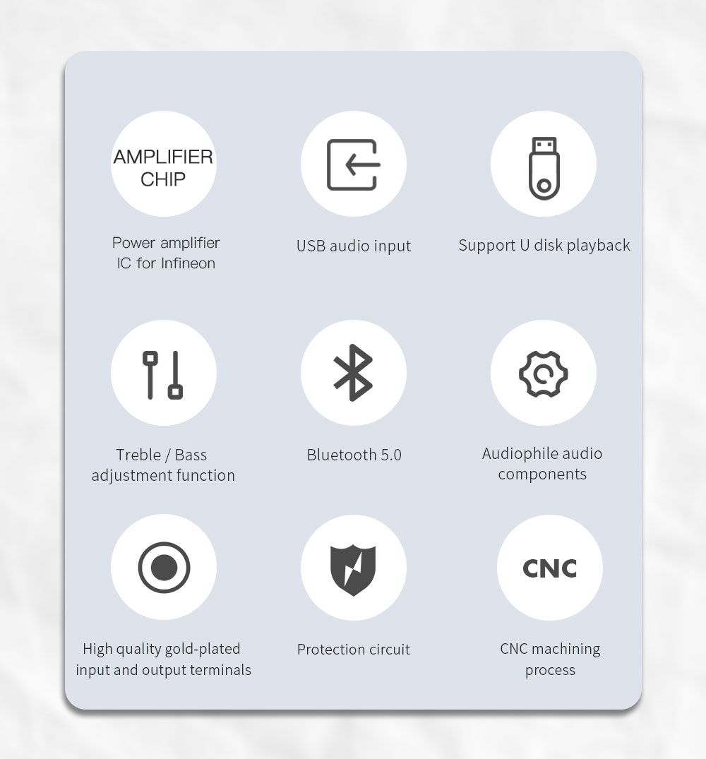 - Bluetooth 5.0 receiver for APTX, better sound quality, longer transmission distance